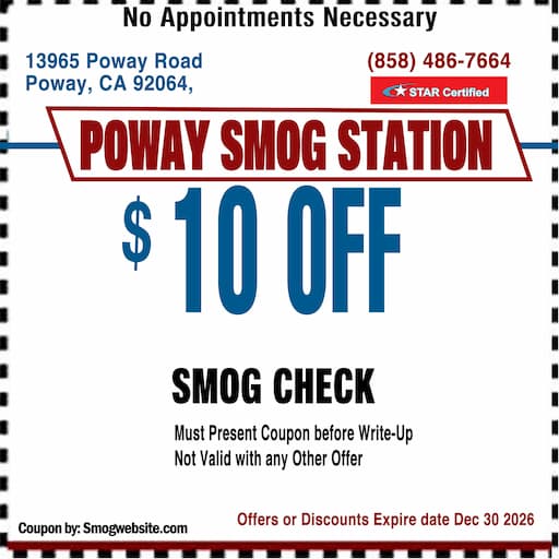 We offer special discount Coupons of $10 OFF. Grab yours today and bring in your vehicle to our Star Station. Save money on your next Smog check with Poway Smog Station.